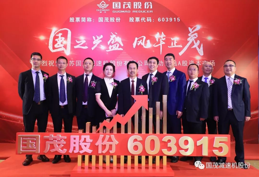 2019年6月14日上午9點(diǎn)30分,江蘇國(guó)茂減速機(jī)股份有限公司上市儀式于上海證券交易所舉行,宣告江蘇國(guó)茂減速機(jī)股份有限公司正式上市,股票簡(jiǎn)稱為“國(guó)茂股份”,股票代碼為“603915”。這是國(guó)茂股份一個(gè)值得記載的歷史時(shí)刻,這也是一個(gè)新起點(diǎn),國(guó)茂股份風(fēng)帆高揚(yáng)、破冰踏浪,開(kāi)啟登陸資本市場(chǎng)的新征程!